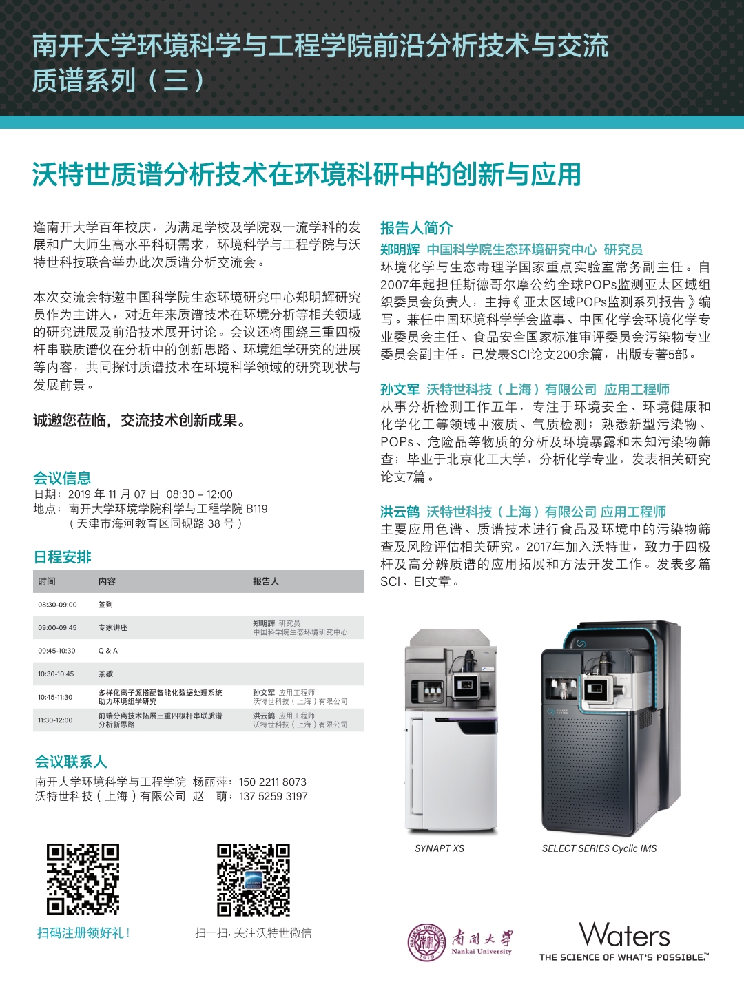 南开大学环境科学与工程学院前沿分析技术与交流——质谱系列讲座(三)