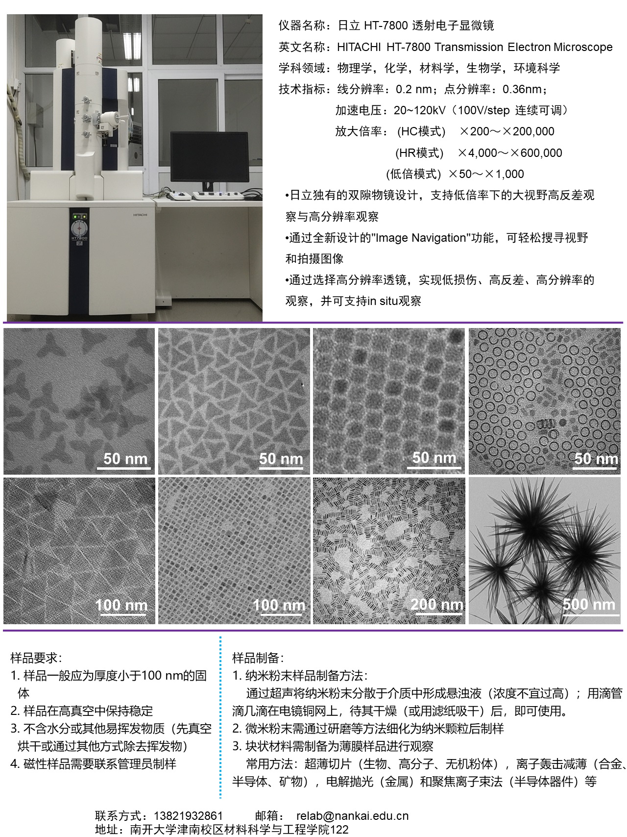 日立HT-7800 透射电子显微镜已加入共享平台,欢迎预约使用!
